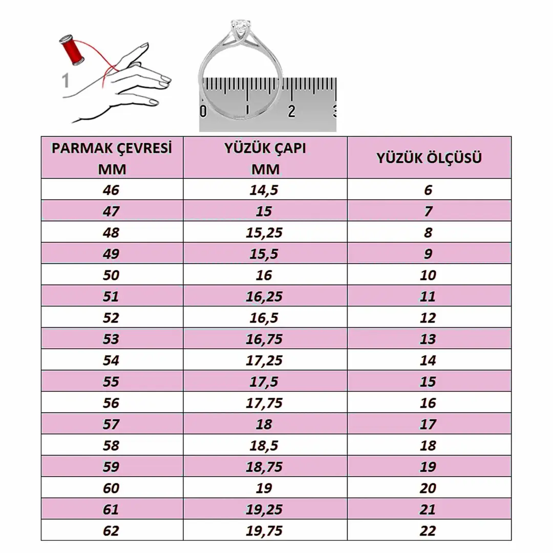 Mevcut Bir Yüzükten Ölçüm: Daha önce takıp rahat ettiğiniz bir yüzüğünüz varsa, onun iç çapını cetvelle milimetre cinsinden ölçün.